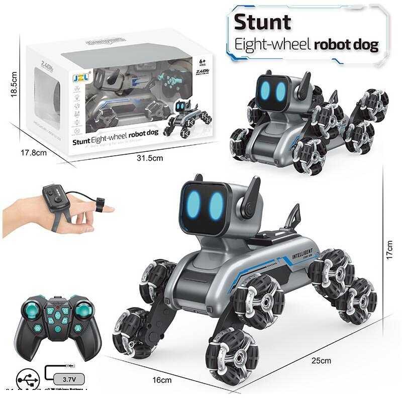 Робопес на восьми колесах — це інноваційна іграшка для юних шанувальників техніки та робототехніки. Завдяки сучасному дизайну та функціональності, цей чотирилапий друг виконує дивовижні трюки, рухається в різних напрямках та має LED-підсвічування, яке робить гру ще захопливішою. Управління здійснюється за допомогою пульта дистанційного керування або спеціального контролера на руці, який реагує на рухи, що додає інтерактивності. Це ідеальний вибір для дітей від 6 років, які мріють поринути у світ майбутнього! Особливості: - розмір: 25 х 16 х 17 см; - роликові колеса, які можуть трансформуватися; - тип живлення - акумулятор 3,7 V; - USB-кабель для заряджання у комплекті; - пульт керування 2,4 Ghz працює від 2-х батарейок “АА” (не додаються); - сенсорний браслет працює від 2-х батарейок “ААА” (не додаються); - підсвічування очей різними кольорами; - режим демонстрації; - динамічна музика; - режим “Без звуку”; - гумовий хвостик; - іграшка виготовлена з пластику.